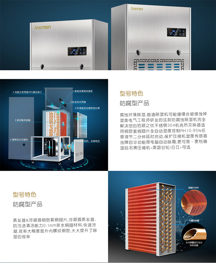 安詩曼是專業(yè)防腐除濕機生產廠家,主要產品有工業(yè)除濕機,高溫烘干機,轉輪除濕機,低溫除濕機,吊頂除濕機,商用抽濕機,商用除濕機,工業(yè)抽濕機,工業(yè)干燥機等產品